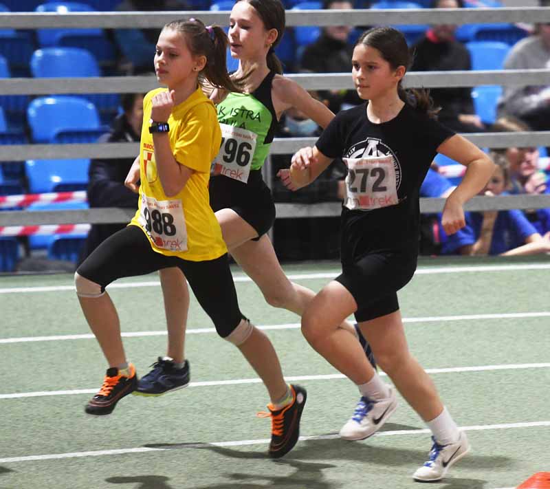 Već dan nakon kadetskog, dakle 13. veljače, na Velesajmu je održano i mlađekadetsko prvenstvo države. Iznimno puno natjecateljica i natjecatelja može samo radovati. Na primjer, na 60 metara nastupilo je čak 69, a na 200 metara 75 mlađih kadetkinja! Josip Pernar i Dina Fell su svojim broncama osigurali Mladosti 16. poziciju od 19 klubova koliko je osvajalo medalje na PH.